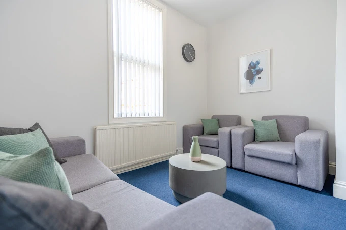 The building is arranged to support private healthcare delivery, with individual therapy rooms and comfortable communal spaces used for group sessions. The setting offers a calm and professional daytime environment, allowing clients to return home following scheduled appointments.