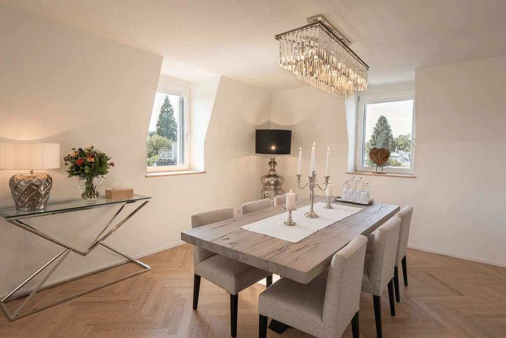 Clients reside in private penthouse apartments located on the shores of Lake Zurich. Each residence measures approximately 250 square metres and is fully furnished, offering a master bedroom, en-suite bathroom, fully equipped kitchen, and dedicated spaces for therapy, treatment, and relaxation.